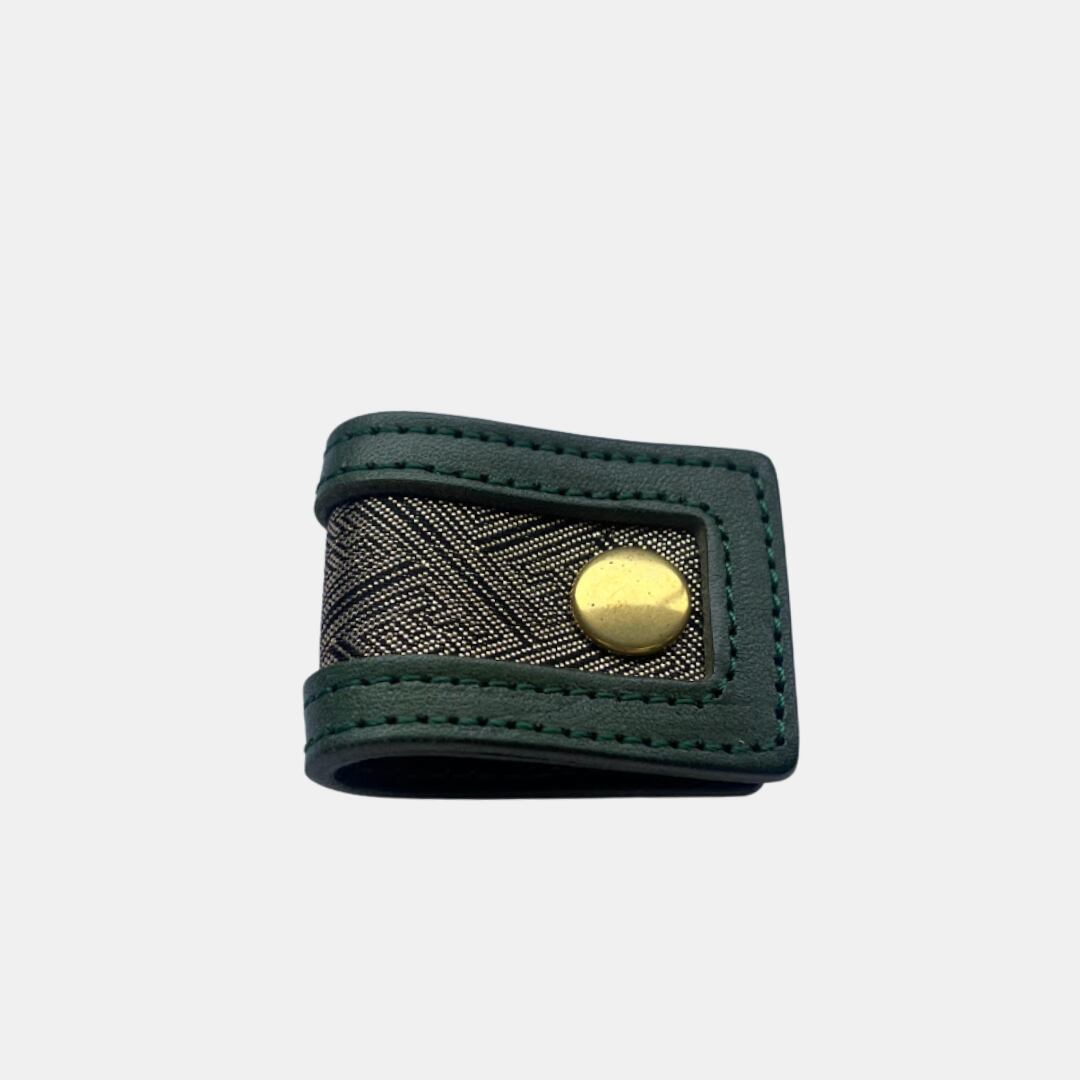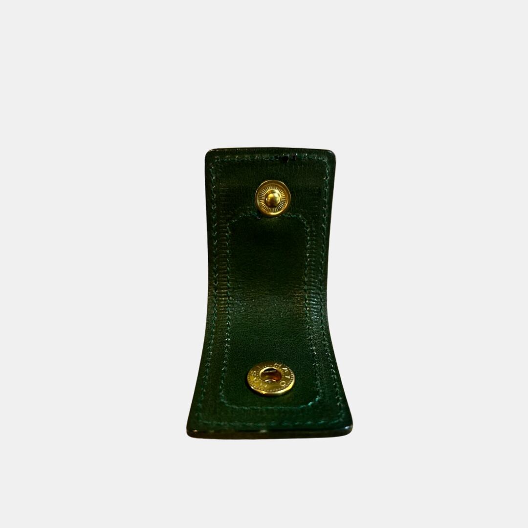 深みのあるダークグリーンの本革を使用したコードホルダーは、控えめながらも確かな存在感を放ちます。艶を抑えた渋みのある色調が、持つ人の品格とセンスを静かに物語る一品です。