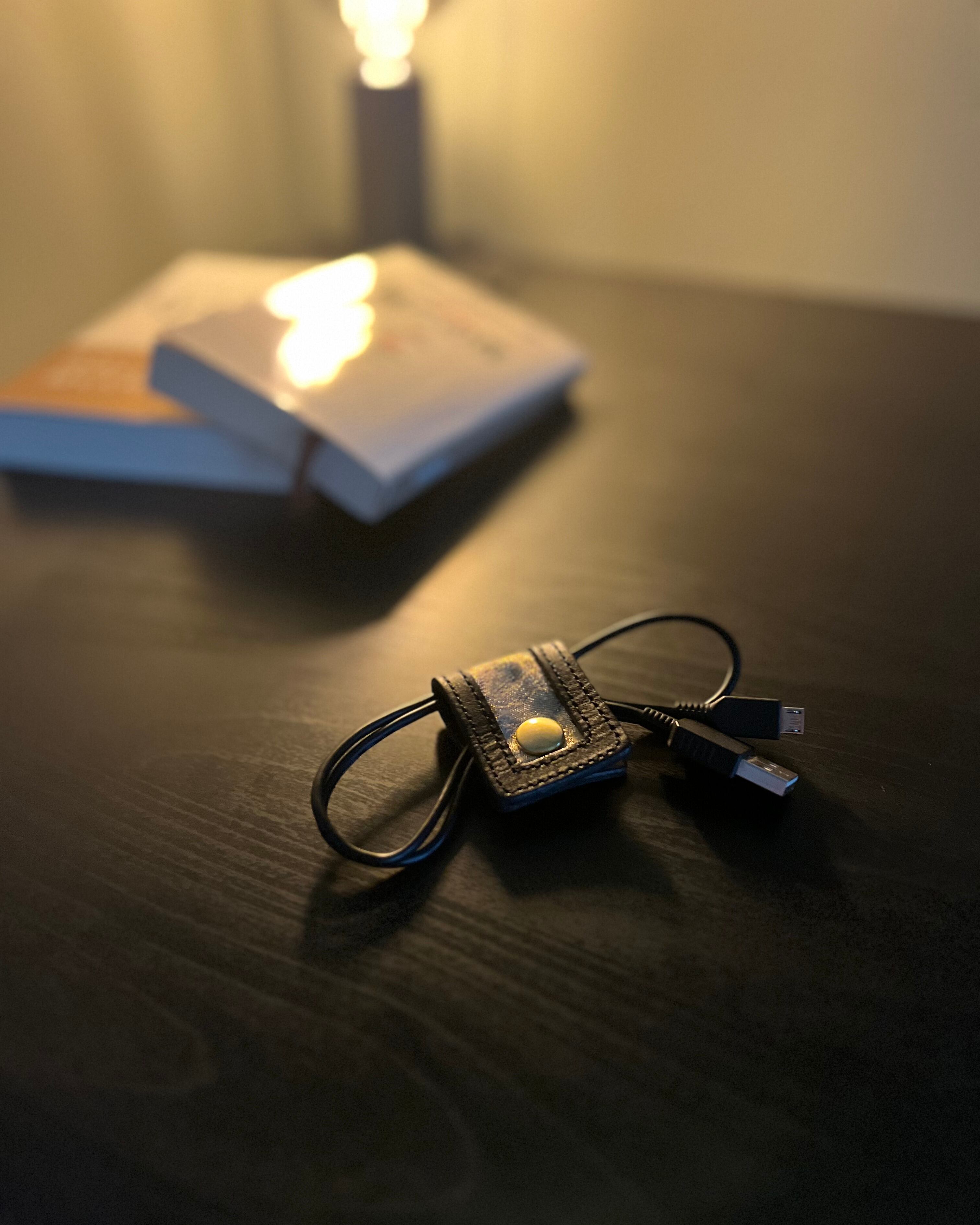 This cord holder is made from rich, deep black genuine leather and finished in a calm, understated tone. Free from ornate decoration, it showcases the beauty of quality materials and craftsmanship—an embodiment of true adult elegance.