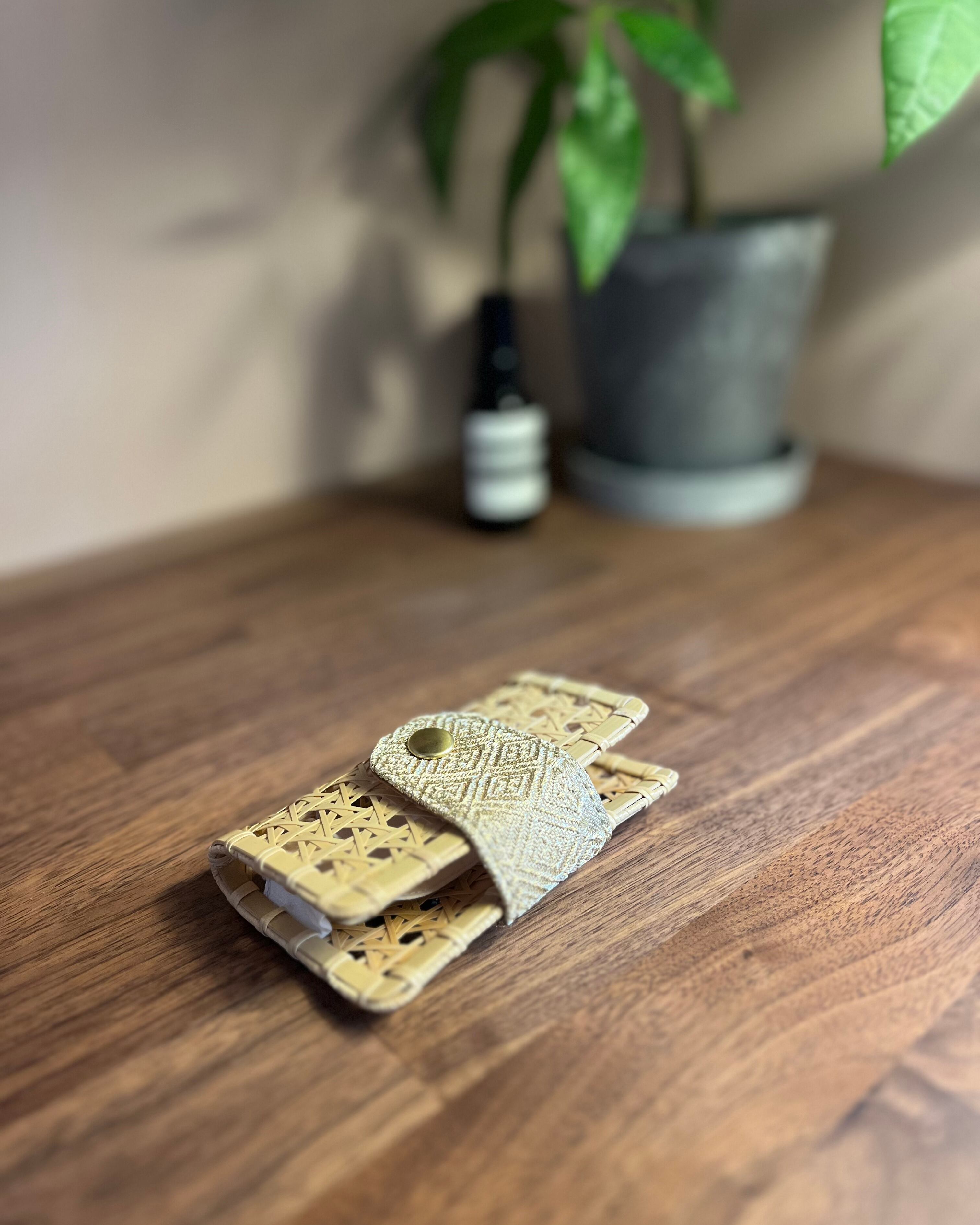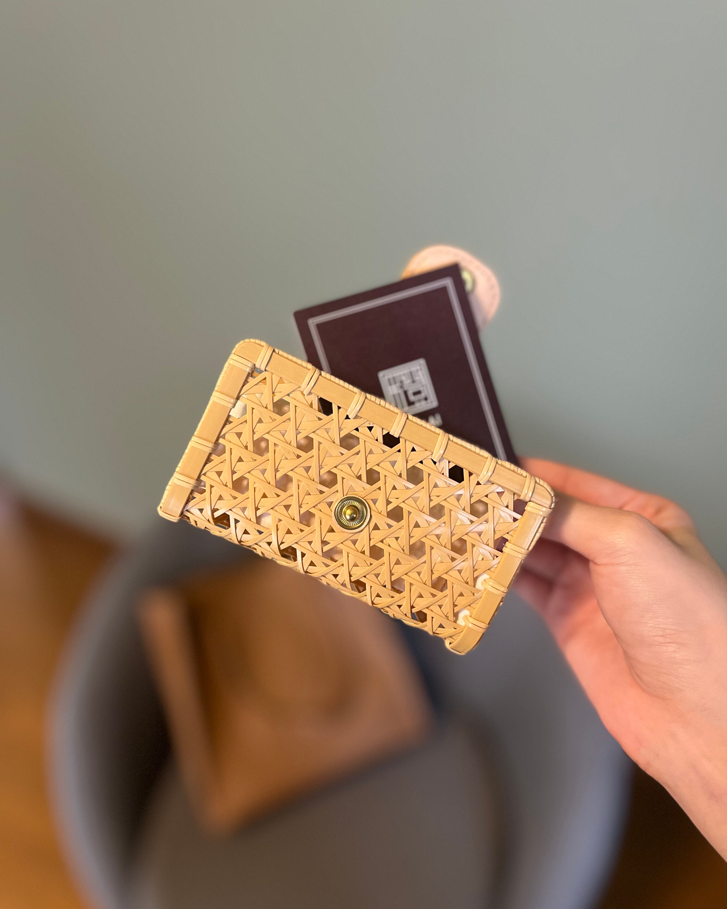 The GREETING series features a unique blend of traditional bamboo craftsmanship and elegant obi (kimono sash) fabric.